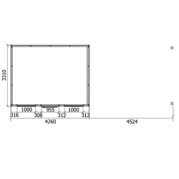 Tuinhuis met pergola 450 cm2 ramen in helder glas2 steunpalen 120 x 120 mmGrondverankering niet inbegrepen