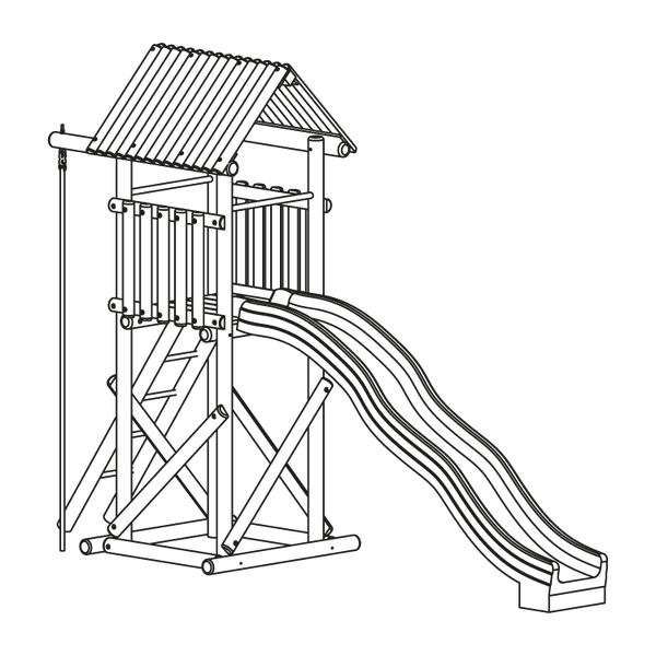 Een 3 m lange glijbaan (A geel, B groen, C blauw, D rood, E roos) inbegrepen