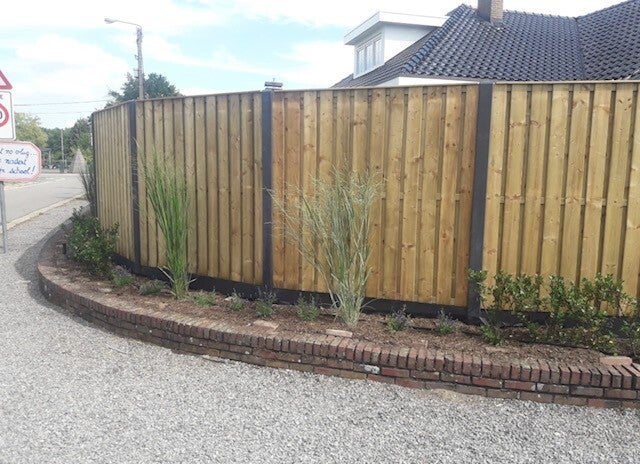 Verticaal recht tuinscherm met 23 planken rvs ( torx ) geschroefd